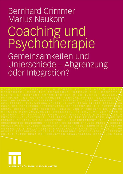 Grimmer, B. & Neukom, M. (2009). Coaching und Psychotherapie. Gemeinsamkeiten und Unterschiede – Abgrenzung oder Integration? Wiesbaden: VS Verlag.
